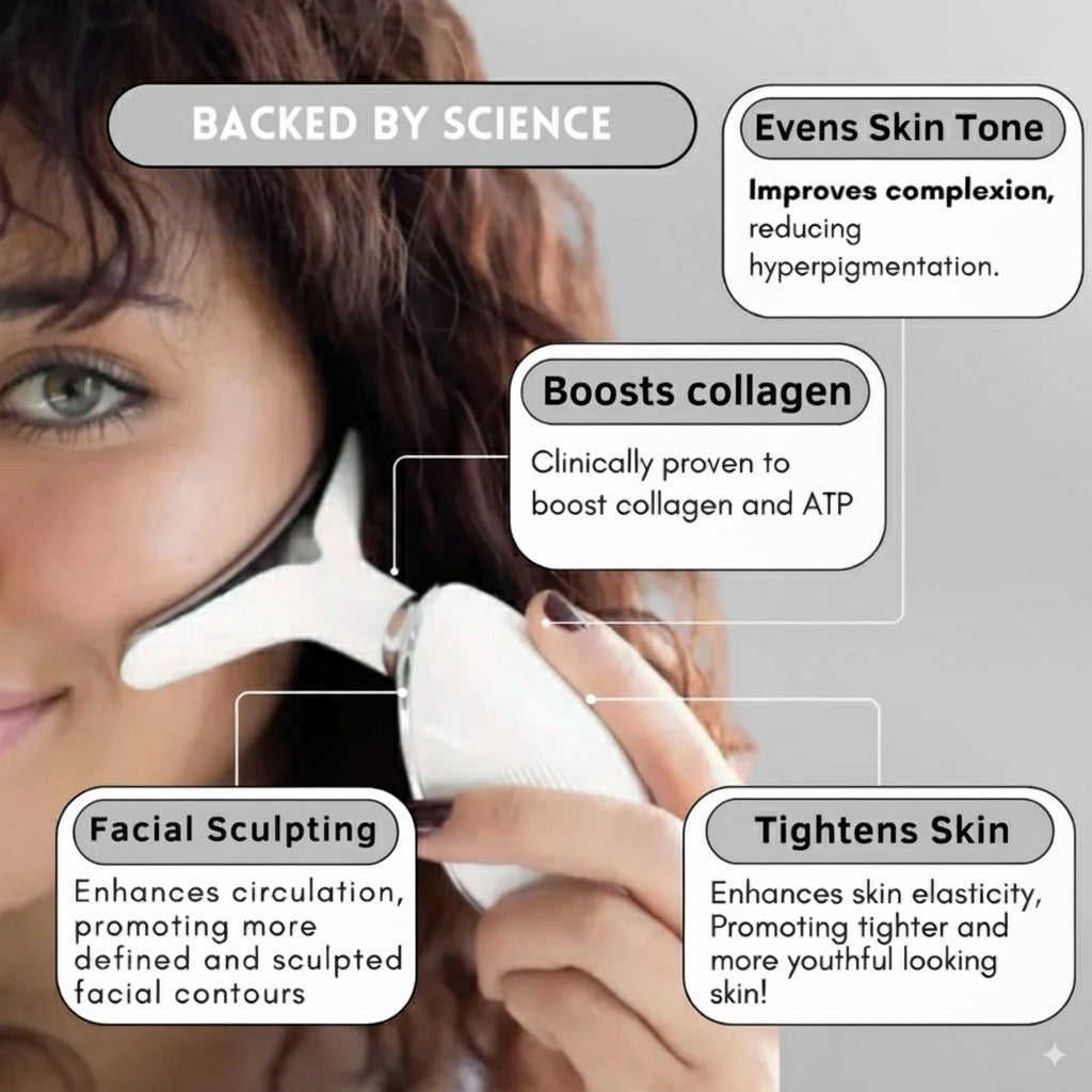 - Electrical stimulation boosts blood flow & tones facial muscles.